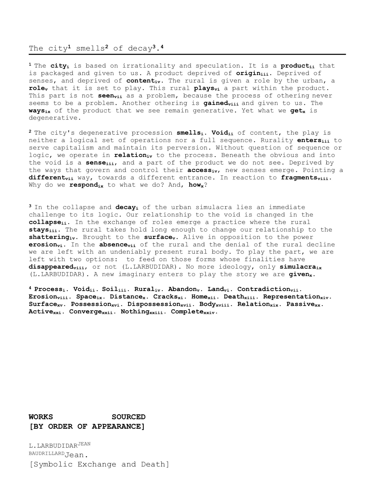 The City Smells of Decay. Journal of Biourbanism. International Society of Biourbanism. 1&2/2014 [2015]. With On The City Smells of Decay—An Epilogue by Stefano Serafini + We See Only What Has Been Produced For Us To See—A Topsoil Review by Kelly Nosari.